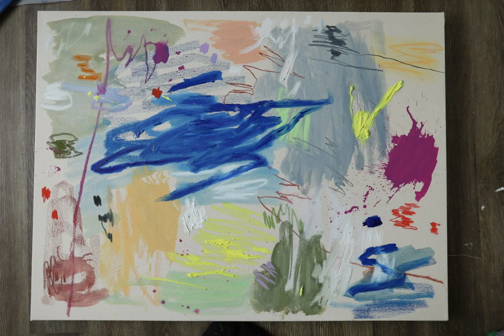 Oil Paint, acrylic paint, oil pastel, pastel, lightly varnished,